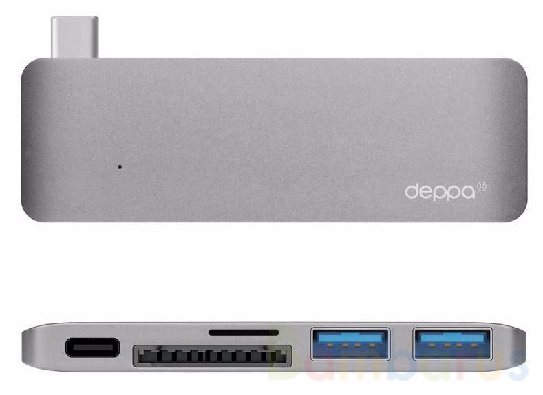 Коннектор USB 3.1 Type-C, Разъем USB 3.1 Type-C (до 5Гбит/с), 2 разъема USB 3.0 Type-А (до 5Гбит/с), Разъем для карт памяти формата microSDHC, Разъем для карт памяти формата SDHC, Светодиодный индикатор состояния, Материал корпуса: алюминий, Габаритные размеры: 89х28х8мм, Масса устройства: 21 г.