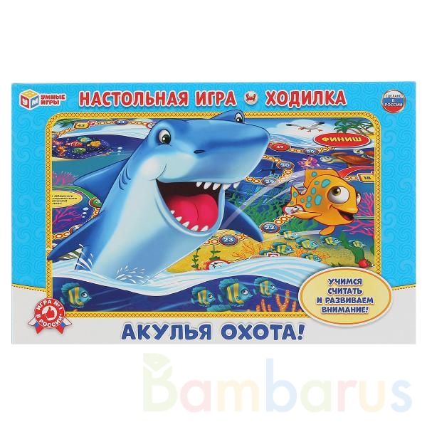 Настольная игра-ходилка «Акулья охота» ТМ «Умные игры» станет отличным подарком для маленького любознайки:- рассчитана на 2-4 игроков- учимся считать и развиваем внимание- яркие цвета- правила на обороте упаковкиВ комплекте:- игровое поле- 4 фишки- игральный кубикВ игре могут участвовать как 2 чело…