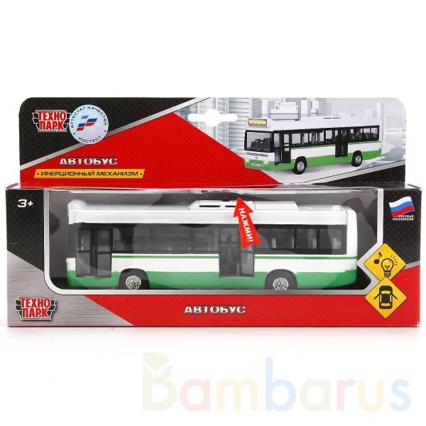 - инерционный механизм (поставьте автобус на ровную поверхность, потяните за корпус назад, отпустите и он начнёт быстро двигаться вперёд)