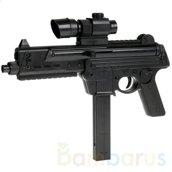 Игровой автомат с глушителем, выполненный в виде современного оружия с удобной рукояткой, приведёт юного стрелка в восторг.