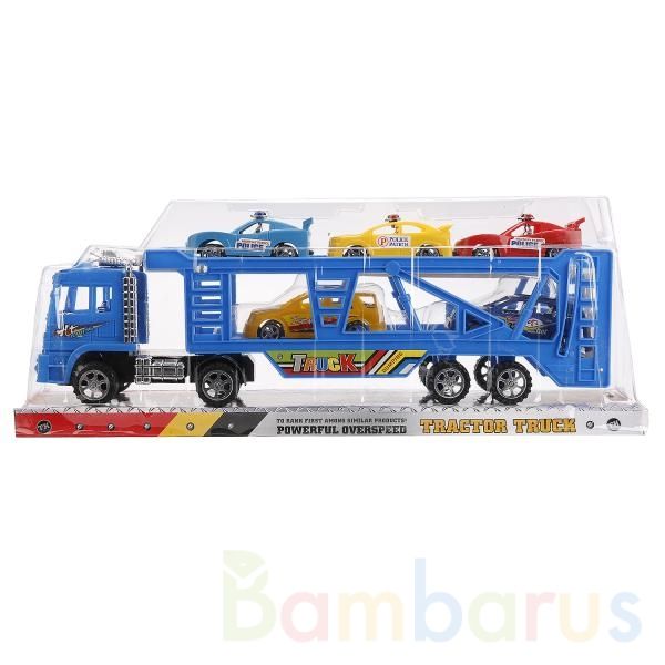 Трейлер с набором автомоделей порадует любого юного автолюбителя! Этот массивный автовоз с мощным инерционным механизмом будет незаменимым помощником малыша в играх с машинами, а набор авто успешно дополнит его коллекцию моделей. С таким трейлером ребёнок придумает необыкновенные приключения и сможет справиться с любыми препятствиями и авариями в играх! Игрушка сертифицирована, представлена в ассортименте, рекомендуется для детей старше 3 лет.