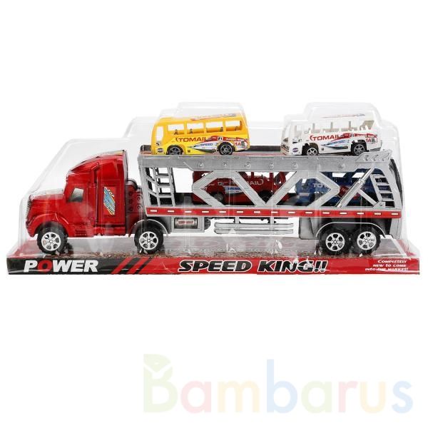 Трейлер с набором автомоделей порадует любого юного автолюбителя! Этот массивный автовоз с мощным инерционным механизмом будет незаменимым помощником малыша в играх с машинами, а 4 автобуса успешно дополнят его коллекцию моделей. С таким трейлером ребёнок придумает необыкновенные приключения и сможет справиться с любыми препятствиями и авариями в играх! Игрушка сертифицирована, представлена в ассортименте, рекомендуется для детей старше 3 лет.