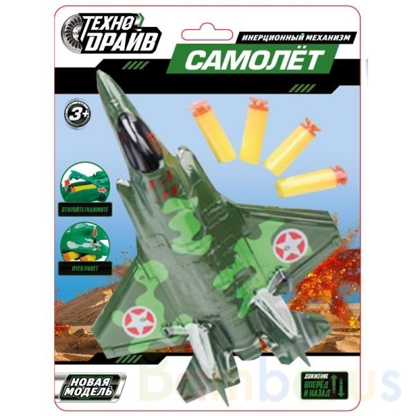 Вашему ребёнку обязательно понравится этот яркий военный самолёт, который может запускать ракеты из мягких пуль. Такая игрушка не только развлечёт малыша, но и познакомит его с видами военной техники. Компактный размер позволяет брать самолёт с собой на прогулку.
