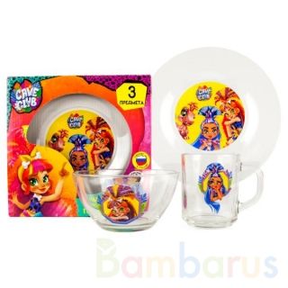 Набор детской стеклянной посуды «Cave Club» ТМ «УМка» непременно порадует вашу принцессу: - в наборе 3 предмета: кружка, салатник, тарелка- яркое оформление- безопасная и прочная- можно мыть в посудомоечной машине Собственная посуда с изображением любимых героинь непременно понравится малышке. С т…