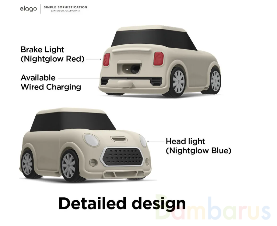 Elago Mini Car Silicone Hang case - стильный и надежный силиконовый чехол от бренда Elago для беспроводных наушников первого и второго поколения Apple AirPods, созданный для защиты зарядного кейса от потертостей, влаги, пыли и царапин. Очень сверхлегкий и приятный на ощупь, чехол плотно облегает фу…