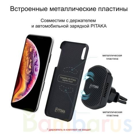 Изделие оснащено встроенной металлической пластиной, благодаря чему телефон с легкостью фиксируется на магнитном держателе для авто той же торговой марки.