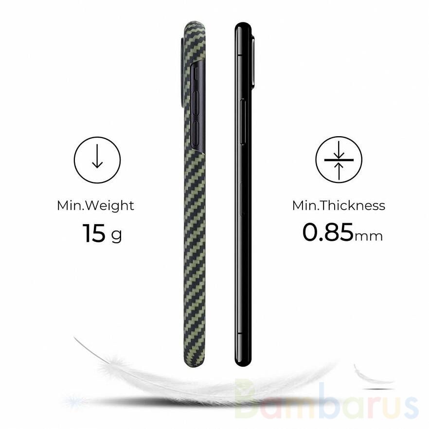 PITAKA MagCase — сверхпрочный чехол, изготовленный из высокотехнологичного арамида, для вашего iPhone. Арамид известен тем, что создавался и успешно используется для создания кузовов суперкаров и деталей аэрокосмических ракет, поэтому он невероятно прочный и лёгкий. Соответственно PITAKA MagCase из 100% арамида обеспечит вашему смартфону бескомпромиссную защиту, при этом почти не добавив ему объёма и веса. Стоит отметить, что поверхность чехла устойчива к царапинам и выцветанию, поэтому он сохранит свой первозданный внешний вид в течение долгого времени.