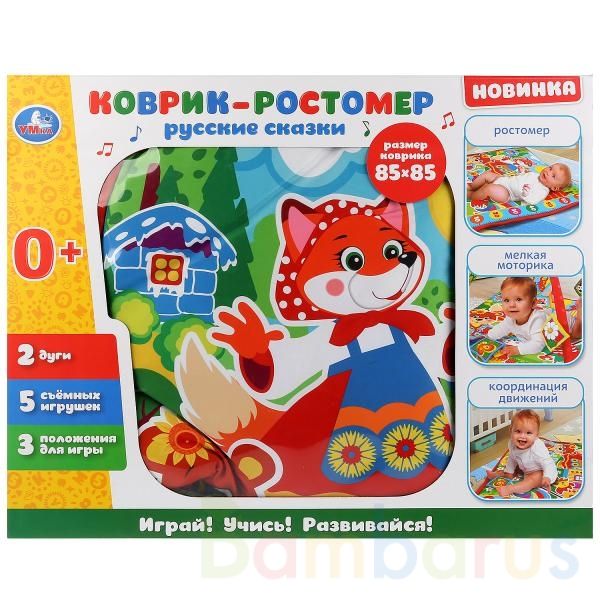 Коврик-ростомер с мягкими игрушечками на подвеске «Русские сказки» ТМ «УМка» порадует комплектацией и функциями 5 в 1: