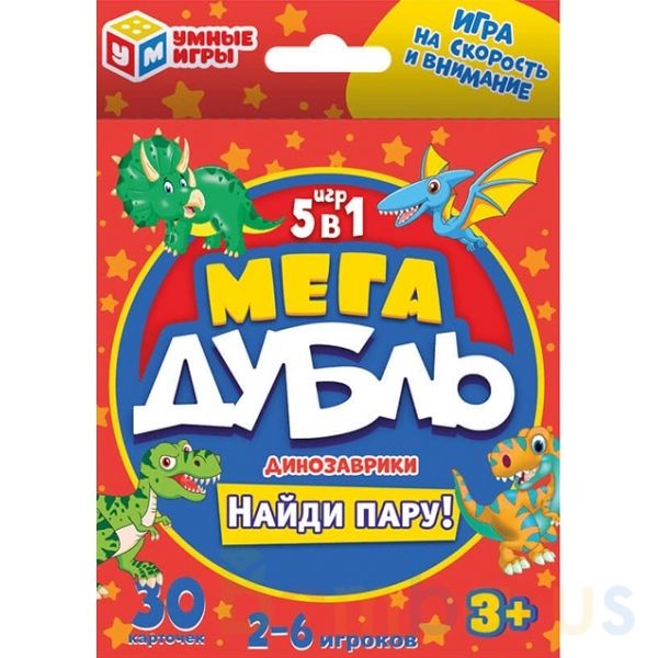 Карточная игра 5 в 1 «Мега Дубль. Найди пару! Динозаврики» ТМ «Умные игры» - отличный вариант для весёлого и интересного времяпровождения.