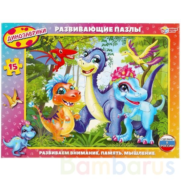 Развивающие пазлы в рамке «Динозаврики» ТМ «Умные игры» непременно понравятся маленькому любознайке: