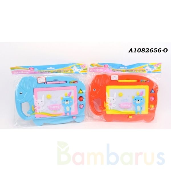 Малыш с удовольствием будет рисовать на этой яркой магнитной доске в виде слона, а магнитные печати сделают это занятие ещё более интересным. Если на доске закончилось место, можно просто стереть нарисованное специальным ползунком снизу - поле снова чистое, и можно продолжать творить.