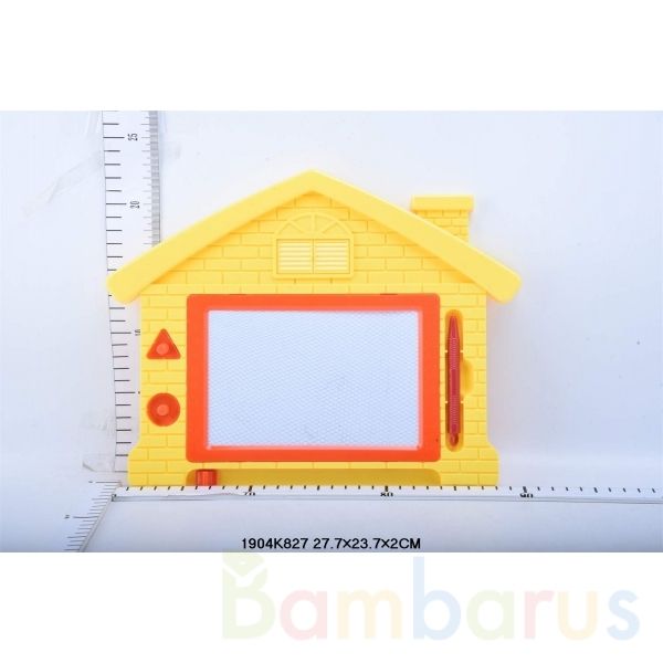 Малыш с удовольствием будет рисовать на этой яркой магнитной доске в виде домика с трубой, а магнитные печати сделают это занятие ещё более интересным. Если на доске закончилось место, можно просто стереть нарисованное специальным ползунком снизу - поле снова чистое, и можно продолжать творить.