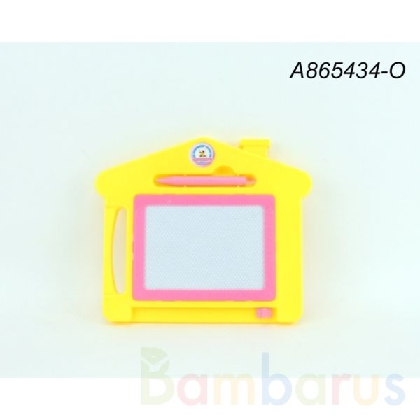Доска для рисования непременно понравится маленькому художнику:- магнитный карандаш- оригинальный дизайн- удобная ручка для переноскиМалыш с удовольствием будет рисовать на этой яркой доске в виде домика специальным магнитным карандашом. Если на доске закончилось место, можно просто стереть нарисов…