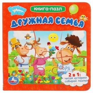 Книга-пазл 2 в 1 «Бурёнка Даша. Дружная семья» ТМ «УМка» станет прекрасным подарком для ребёнка:- герои любимого мультфильма- 6 пазлов из 6 деталей- красочные иллюстрацииДанная книга выполняет сразу 2 функции: это и книга для чтения, и игра в пазлы. На каждом развороте малыша ждёт яркий пазл с изоб…