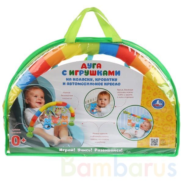 Развивающая «Дуга с игрушками» ТМ «УМка».Яркая дуга с игрушками на подвеске подарит вашему ребёнку отличное настроение. С игрушкой будет уютно и радостно – и дома, и на прогулках. Способствует развитию мелкой моторики ребёнка, логического и образного мышления, визуального и пространственного воспри…
