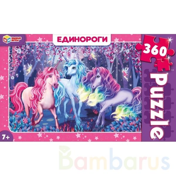 Классические пазлы в коробке «Единороги» ТМ «Умные игры» непременно понравятся маленьким фантазёрам:- 360 деталей- насыщенные цвета- все элементы хорошо и плотно соединяются друг с другомЗадача ребёнка – в правильной последовательности соединить элементы пазла друг с другом и получить в результате …