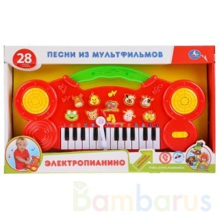 Обучающее пианино "20 любимых песен и потешек" ТМ "УМка" с микрофоном - новинка, которую полюбит каждый малыш. Оно выполнено из прочного пластика, все детали окрашены в яркие цвета. У игрушки есть черные и белые клавиши, разноцветные кнопки с разными функциями. При нажатии на них ребёнок услышит 20 любимых песен на стихи М. Дружининой и потешки. Ребёнок также сможет взять пианино с собой и везде носить его с собой, держа за удобную ручку. При нажатии на кнопки загораются разные лампочки. Микрофон позволяет записывать композиции, которые составит ребёнок. Развивает музыкальный слух, мелкую моторику, артистизм, память. Рекомендуется детям от 3 лет.