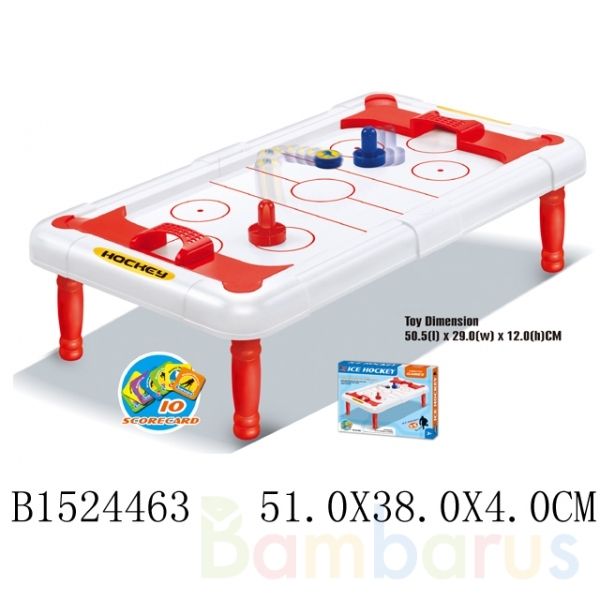 Настольная игра «Аэрохоккей» – детская версия известной игры.Комплектация:- стол на ножках- 2 игровых прибора- шайбаЗадача игроков - забить как можно больше шайб в ворота противника. Игра рассчитана на 2 игроков.Игра в настольный аэрохоккей развивает:- ловкость- внимание- координацию движений- мелк…