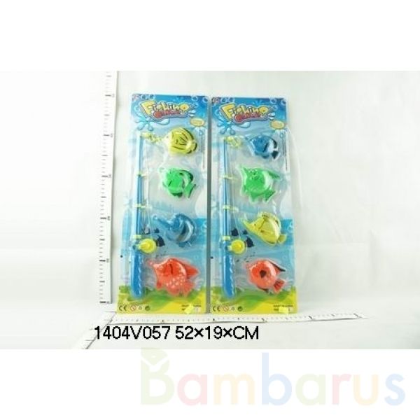 Яркая и удобная удочка с катушкой, регулирующей леску, легко захватывает разноцветных рыбок. После того, как рыбка попадётся на крючок, ребёнок может «вытащить улов». С таким набором здорово играть в ванной и на свежем воздухе.