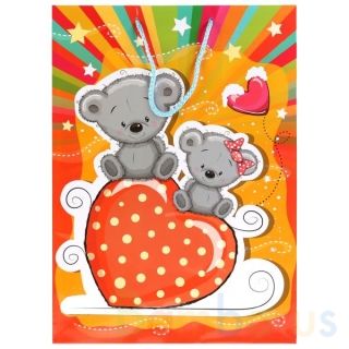 Праздничный подарочный пакет с изображением очаровательных медвежат станет ярким запоминающимся штрихом, изюминкой детского подарка, и принесёт радость предвкушения. Ему будет интересно заглянуть в него, чтобы узнать, что же приготовили родные или друзья на день рождения или на любой другой праздник.
