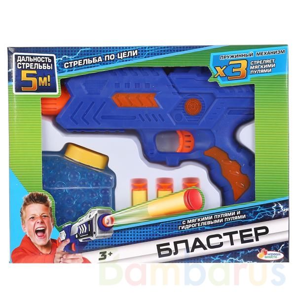 Игровой «Бластер» ТМ «Играем вместе» станет отличным подарком для юного стрелка:- 3 мягких пули- набор гидрогелевых пуль (рекомендация: залить шарики водой – через 15 минут пули будут готовы)- дальность стрельбы – 5 м- пружинный механизм- удобная рукоять с нескользящим покрытиемС бластером ребёнок …