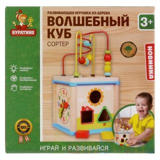 Развивающая игрушка-сортер из дерева «Волшебный куб» ТМ «Буратино» – сразу 5 в 1: