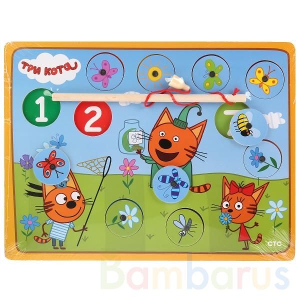 Деревянная игрушка «Три кота. Ловим бабочек» ТМ «Буратино» – увлекательная и полезная игра для вашего юного любознайки. Она развлечёт ребёнка и позволит ему упражняться в ловкости и смекалке!Любимые персонажи мультфильма «Три кота» приглашают вашего ребёнка поиграть в оригинальную рыбалку. Ловить н…