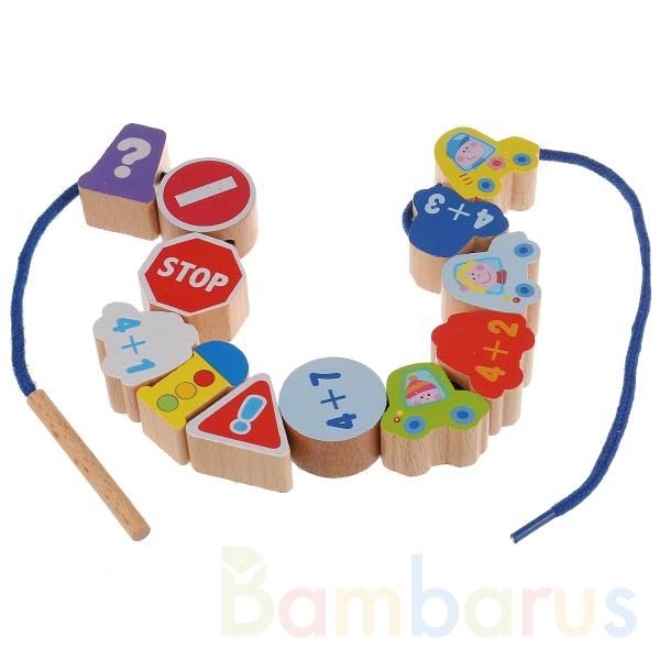 Играя, дети прошнуровывают фигуры верёвочками, вставляя их в специальные отверстия и собирая бусы. Как приятно будет малышке подарить полученное украшение или носить его самой. Компактные размеры игрушки позволят малышу брать её с собой на прогулку или в гости к друзьям.