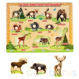 Деревянная игра-вкладыш «Лесные животные» - специальное предложение ТМ "Буратино" для развития малышей. Она состоит из деревянной доски с углублениями, иллюстрированными изображениями зверей, и вкладышей, помещающихся в них. Задача детей поместить вкладыши в подходящие ячейки. Игра развивает вниман…