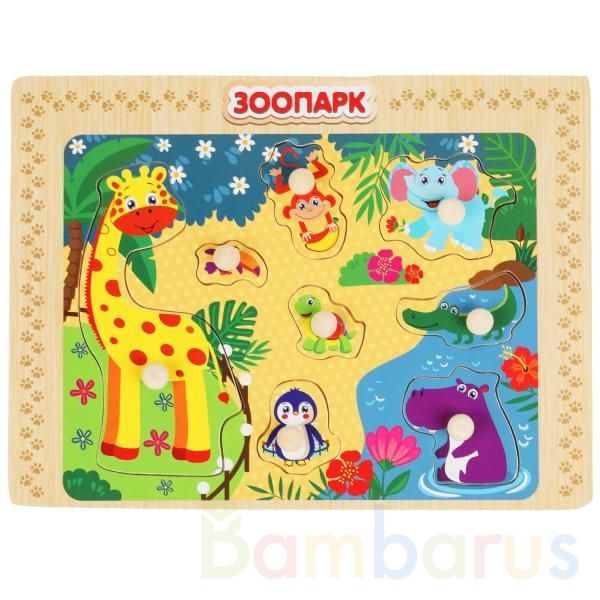 Деревянный пазл-вкладыш «Зоопарк» ТМ «Буратино» - отличная развивающая игра для маленьких любознаек: