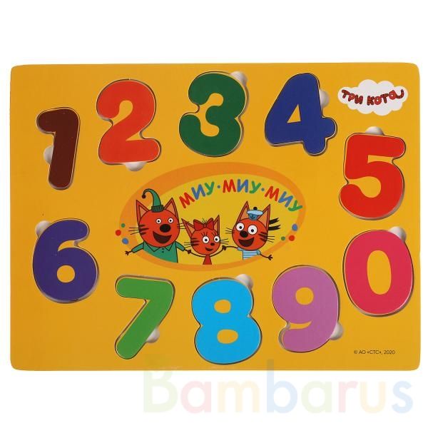 Деревянная игрушка-вкладыш «Три кота. Цифры» ТМ «Буратино» - отличная развивающая игра для маленьких поклонников мультсериала про любознательных котят и их друзей: