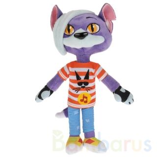 Кот Дымок, по прозвищу Тощий, выглядит в точности как мультперсонаж: у него золотистые глаза, шерсть серого цвета, белая длинная прядка волос, он одет в полосатую футболку с принтом в виде кота в солнечных очках и узкие голубые джинсы. С этой очень мягкой на ощупь игрушкой ребёнок может воссоздать уже знакомые по мультфильму сюжеты или придумать новые. Такой интересный персонаж станет малышу добрым другом, которого можно взять с собой на прогулку или в поездку.