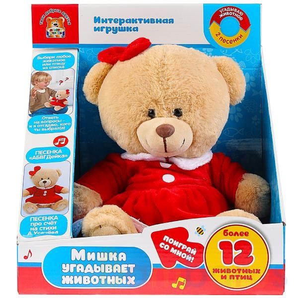 Интерактивная игрушка «Медведица» ТМ «Мульти-Пульти» непременно понравится малышу.Нажмите кнопку на животике и услышите:- угадывает более 12 животных и птиц (выбери любое животное или птицу из списка; ответь на вопросы и игрушка отгадает кого ты выбрал(а))- 2 песенки: «АБВГДейка», «Песенка про счёт…