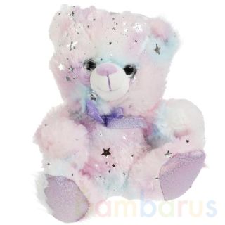 Ребёнок обрадуется очаровательному цветастому медвежонку с серебряными звёздочками, сверкающим бантом и блестящими глазками. Мишку приятно обнимать, ведь он такой мягкий и уютный. Благодаря небольшому размеру, игрушку удобно брать с собой в гости, на прогулки и в поездки.