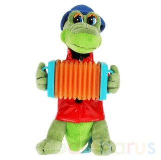 Очаровательный крокодил Гена одет в лаковое красное пальто-пиджак с галстуком-бабочкой и синюю шляпу, а в лапах у мультгероя - яркий аккордеон, неотъемлемый инструмент Гены из мультфильма. С этой игрушкой дети смогут воссоздать уже знакомые сюжеты из мультика и придумать новые. Милый персонаж станет малышу добрым другом, которого можно взять с собой на прогулку или в поездку.