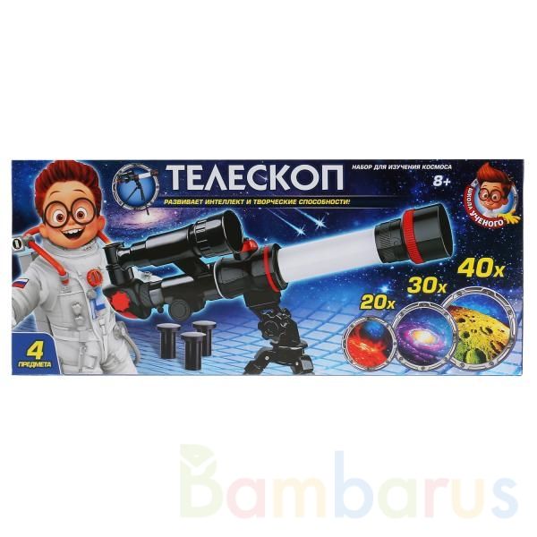 Набор «Школа учёного. Телескоп» ТМ «Играем вместе» создан специально для астронома.Комплектация и особенности:- сделай сам – собери свой телескоп- 4 предмета- 3 увеличения: на 20х, 30х и 40хК звёздам людей всегда притягивал невидимый магнит. Сколько споров и исследований посвящены Космосу. Как мног…