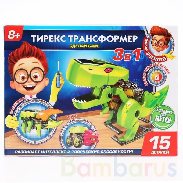Игрушка-опыты «Тирекс трансфромер» 4 в 1 из серии «Школа учёного. Сделай сам!» ТМ «Играем вместе» создана специально для юного инженера.