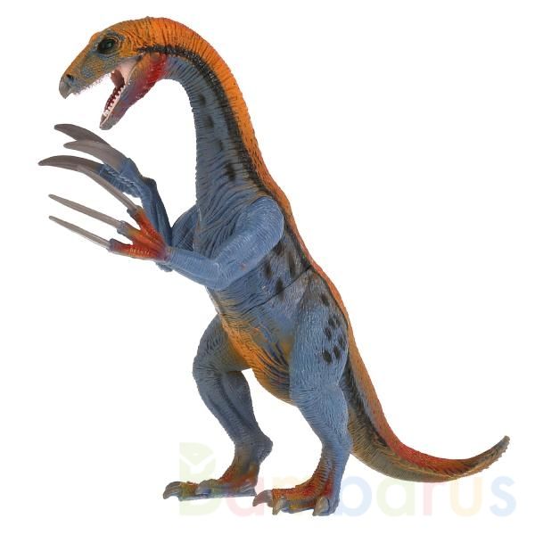 Динозавр Теризинозавр жил много лет назад в конце мелового периода и отличался костями огромного размера. Рассматривая игрушечную фигурку ТМ "Играем вместе", ребёнок отметит его длинные когти, яркий окрас и пасть настоящего хищника с длинными острыми зубами. С таким динозавром можно создавать различные интересные сюжеты, изучать доисторический мир или просто собирать коллекцию. Развивает воображение, расширяет кругозор. Рекомендуется детям от 3 лет.