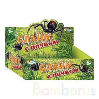Слайм хорошо растягивается, а при резком воздействии рвется. В спокойном состоянии он медленно растекается по поверхности, но затем легко собирается руками. Яркая игрушка обязательно понравится юным любознайкам, а фигурка паука, которую они найдут внутри, приведёт их в полный восторг.