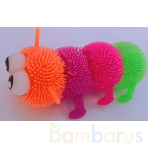 Яркая игрушка-антистресс, по форме напоминающая гусеницу, привлечет внимание маленького любознайки яркими цветами и приятным на ощупь материалом, который легко мнётся и тянется.