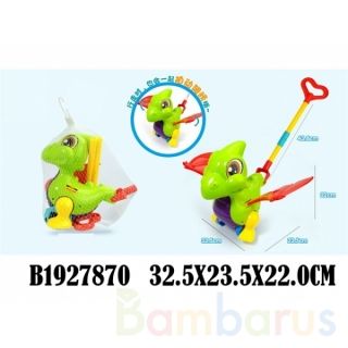 Вашего ребёнка приведёт в восторг эта яркая игрушка в виде динозавра с подвижными крыльями, которая не только развеселит его, но и поможет без страха делать первые шаги. Малыш с удовольствием будет возить каталку за палочку с ручкой и радоваться её весёлому движению.