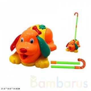 Вашего ребёнка приведёт в восторг эта яркая игрушка в виде милой собачки, которая не только развеселит его, но и поможет без страха делать первые шаги. Малыш с удовольствием будет возить каталку за трость с ручкой и радоваться её забавному движению.