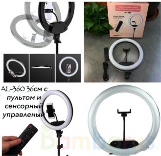 Кольцевая лампа оснащена с кругленным рассеивателем, который дает мягкий и равномерный свет. Внешний диаметр лампы - 36 сантиметров, внутренний - 26 сантиметров. Она работает в трех температурных режимах: холодном, теплом и нейтральном/смешанном. В каждом из них доступна плавная регулировка яркости свечения. Выбрать нужный режим и установить яркость вы сможете с помощью удобного пульта дистанционного управления (димметра), не подходя к лампе и не отрываясь от работы.