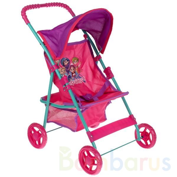 Эта яркая коляска сделана из облегчённых материалов, чтобы ребёнок мог самостоятельно переносить её. Благодаря сдвоенным колёсам, коляска устойчива и ею легко управлять. Ручка коляски оснащена специальной накладкой, чтобы девочке было удобно ее держать. Нежный девичий дизайн непременно понравится малышке. Коляска поможет ребёнку разнообразить сюжетно-ролевые игры.