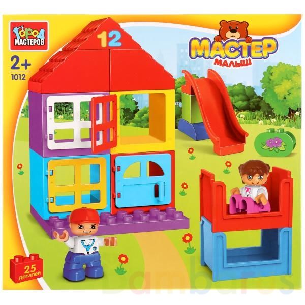 Конструктор "Город мастеров" большие кубики: домик с фигурками, 25 дет. в русс. кор. в кор.2*12шт Конструктор серии "Мастер Малыш: Домик" предназначен для самых маленьких строителей. В набор входит 25 крупных деталей, сделанных из прочного, безопасного пластика, окрашенных в яркие цвета. Их удобно держать в маленьких ручках и плотно соединять между собой. Из элементов можно собрать домик с окошками, кроватки, горку и человечков, чтобы потом играть с ними или пополнить коллекцию. Развивает мелкую моторику, воображение, усидчивость, объясняет понятия "форма, цвет, объём", улучшает пространственное мышление. Совместим с наборами конструкторов других производителей. Рекомендовано детям от 2 лет.