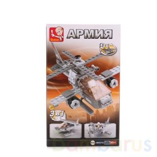 Конструктор 3 в 1 «Армия» с фигуркой поможет разнообразить игры детей. Можно собрать вертолёт, самолёт или гидроплан и посадить в него пилота! Получившаяся игрушка станет гордостью игрушечной коллекции ребёнка.
