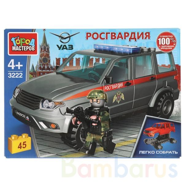 Конструктор «УАЗ Patriot» из серии «Росгвардия» ТМ «Город мастеров» понравится маленьким героям.Особенности и комплектация:- 45 деталей- фигурка- легко собрать- совместим с моделями конструкторов мировых брендов- все детали легко и плотно соединяются между собойС помощью этого занимательного констр…