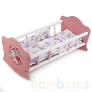 С кроваткой "Милый пони" девочка сможет укладывать любимую куклу спать, не беспокоясь о её комфорте. В набор входит деревянная кроватка, простынка, одеяло и подушка. Комплект постельного белья украшен зайчиками и цветочками. Спинки сделаны в изогнутой форме, чтобы можно было качать и убаюкивать игрушку совсем как настоящего ребёнка. Бортики высокие, выполнены в виде решёток, окрашены в белый и розовый цвета. Размер кроватки составляет 52 см, сделана для кукол размером до 40 см. Позволяет в игре развивать фантазию, заботу и чувство ответственности. Подходит для детей от 3-х лет.