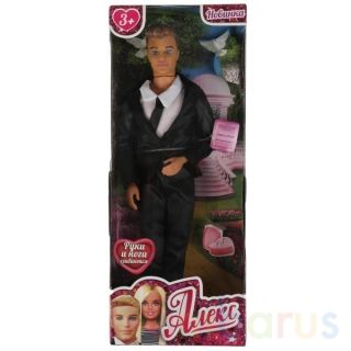 Стильный Алекс, жених Софии, одет в классический чёрный костюм с белой рубашкой и чёрным галстуком. Одежду легко снять и надеть. С такой куклой девочке будет интересно и весело играть: благодаря тому, что руки и ноги куклы подвижны, им можно придать любое положение. Детально проработанный дизайн игрушки вдохновит девочку на новые игровые сюжеты.