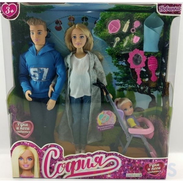 На семейную прогулку София подобрала комфортный базовый образ, состоящий из белой блузы, длинного серого кардигана и практичных джинс. Алекс предпочёл удобную синюю толстовку с крупным принтом в виде цифр и брюки. А их дочка одета в яркую футболку и брючки. Одежду легко снять и надеть. С такими модными куклами девочке будет интересно и весело играть: благодаря тому, что руки и ноги кукол подвижны, им можно придать любое положение. У Софии и её малышки длинные красивые волосы, которые хозяйка кукол сможет заплетать в разные причёски. Детально проработанный дизайн игрушек вдохновит девочку на новые игровые сюжеты.
